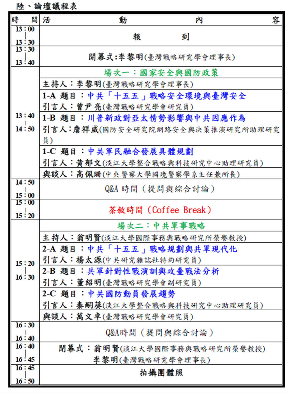 時間:114年9月19日(週五)13:00至16:50地點:中國文化大學推廣教育部大夏館國際會議廳(臺北市大安區建國南路二段231號)主辦單位:臺灣戰略研究學會 、中共研究雜誌社